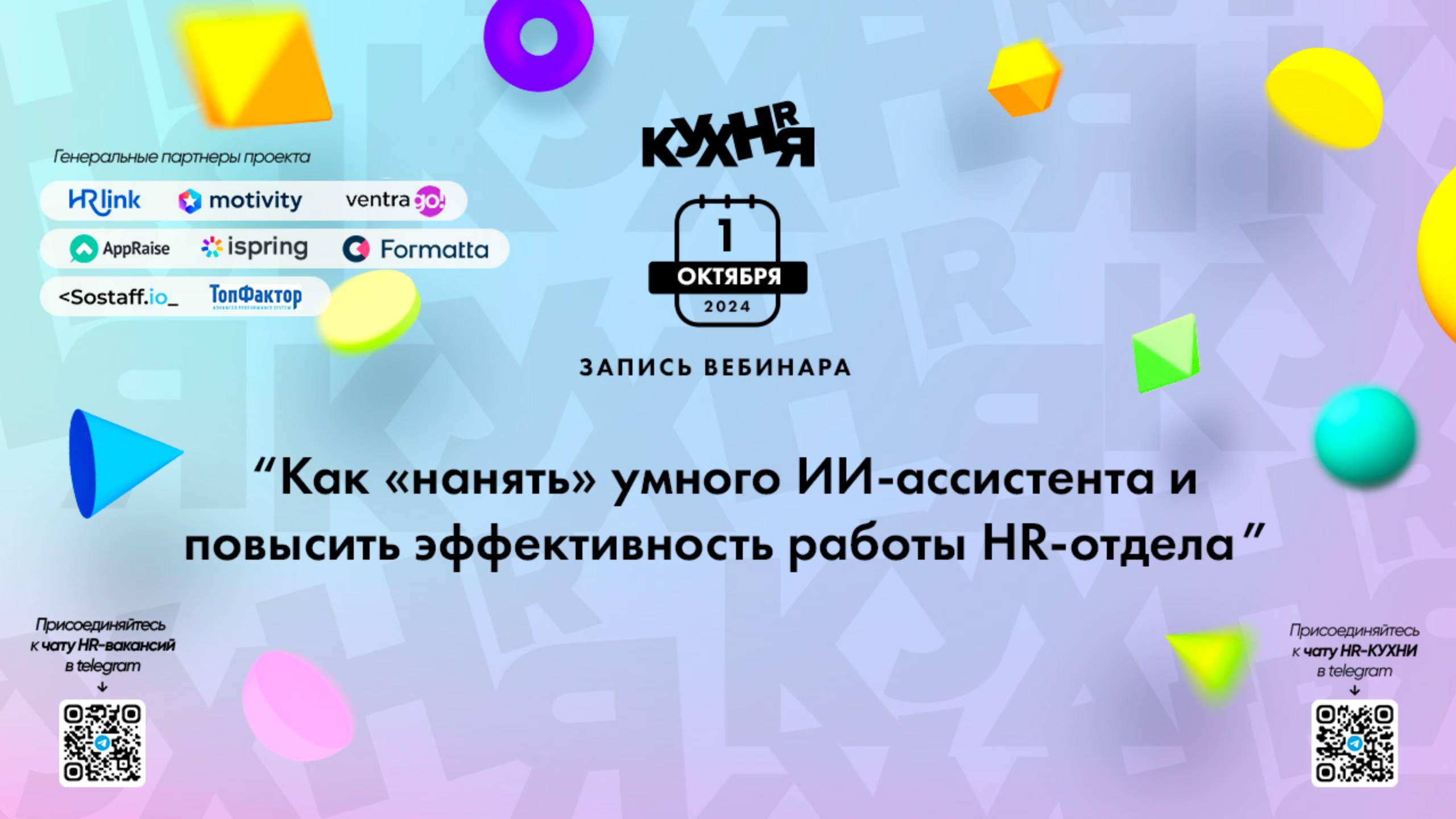 Присоединяйтесь к чатам и каналам HR-КУХНИ в телеграм: - Основной чат HR-КУХНИ в телеграм - https://t.me/+tYgAH0PgPQVkOWIy - Канал HR вакансий в телеграм - https://t.me/+CMNAN2u1hjo3M2Ri - Канал HR-EVENTS в телеграм - https://t.me/hr_kitchen - Канал HR JOURNAL в телеграм - https://t.me/hrkitchenjournal Полезные ссылки: - Каталог HR решений - https://hrkitchen.ru/exhibition - График конференций, бесплатных вебинаров, а также бесплатные курсы – https://hrkitchen.ru/ - Стать спикером HR-КУХНИ - https://hrkitchen.ru/speakers - Подписаться на полезную e-mail рассылку от HR-КУХНИ (новости, гайды, чек-листы, подарки от партнеров) - https://hrkitchen.ru/subscribe