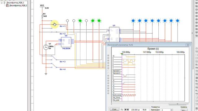 Исследование работы дешифратора SN74LS155N с помощью временных диаграмм в Multisim 14.1