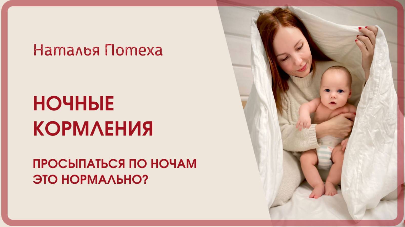 Благодаря этому видео вы узнаете: является ли просыпание по ночам нормальным явлением и как ночные кормления влияют на здоровье детей и их родителей. Мы рассмотрим причины, по которым дети просыпаются ночью, и предоставим рекомендации для мам, чтобы облегчить этот процесс. Вы услышите советы по созданию комфортной среды для ночного отдыха. Автор - Наталья Потеха, психолог, автор популярных книг, многодетная мама. Подписывайтесь на Наталью в телеграм: https://t.me/natapotekha Присоединяйтесь к группе ВКонтакте: https://vk.com/natalyapotekha Скачивайте систему уборки: https://mnlp.cc/mini?domain=natapotekha&id=2\