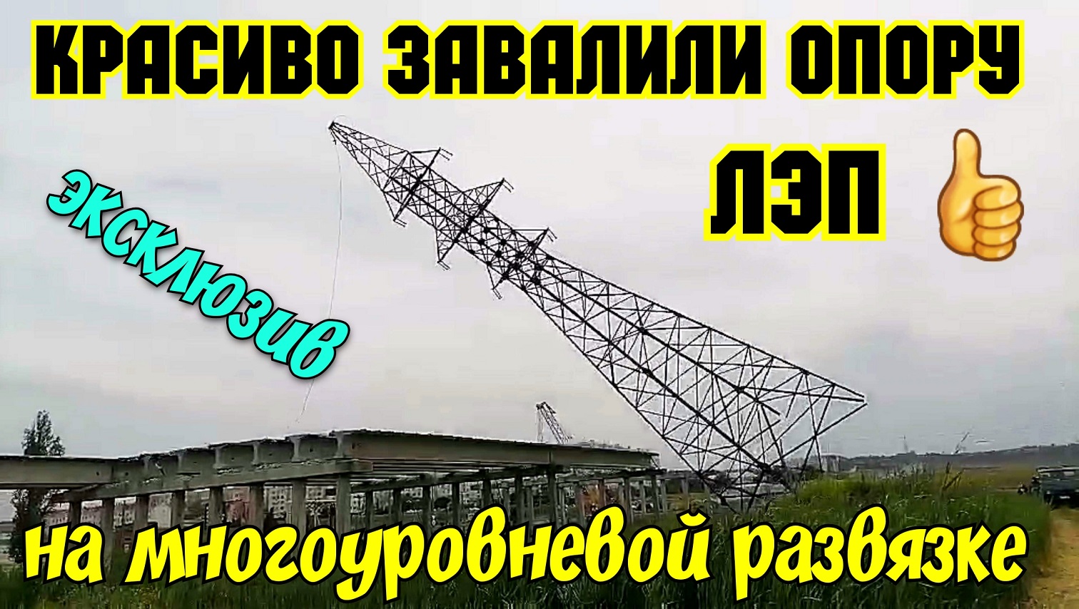 Крым.Эксклюзив.ПАДЕНИЕ опоры ЛЭП-110 в кадре на многоуровневой развязке в Керчи.Фронт работ ОТКРЫТ