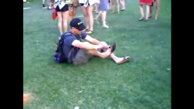 У посетителя музыкального фестиваля возникли большие сложности с тем, чтобы одеть шлепанцы. Прямо мистика какая-то:)