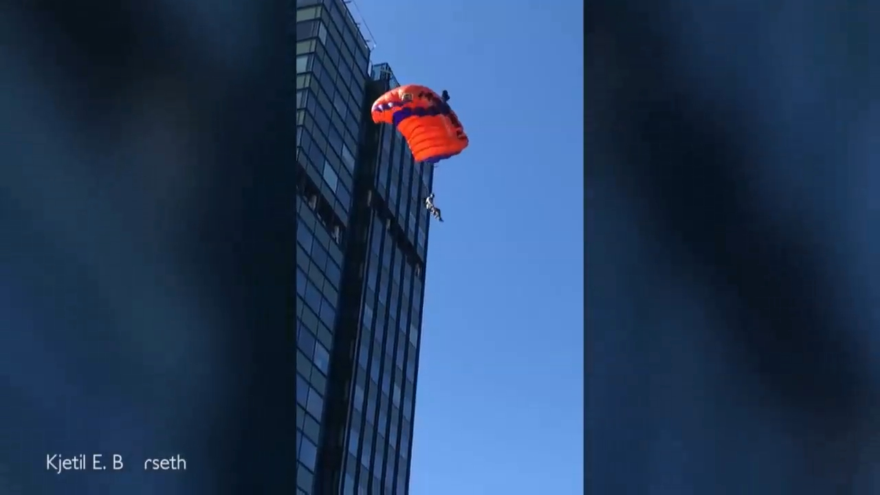 Любитель экстрима из Штатов приехал в Норвегию специально, чтобы покорить местную высотку с парашютом за спиной, но стал только королём норвежской больницы, куда попал, сломав себе обе ноги. #фейл #падение #прыжок #парашютист