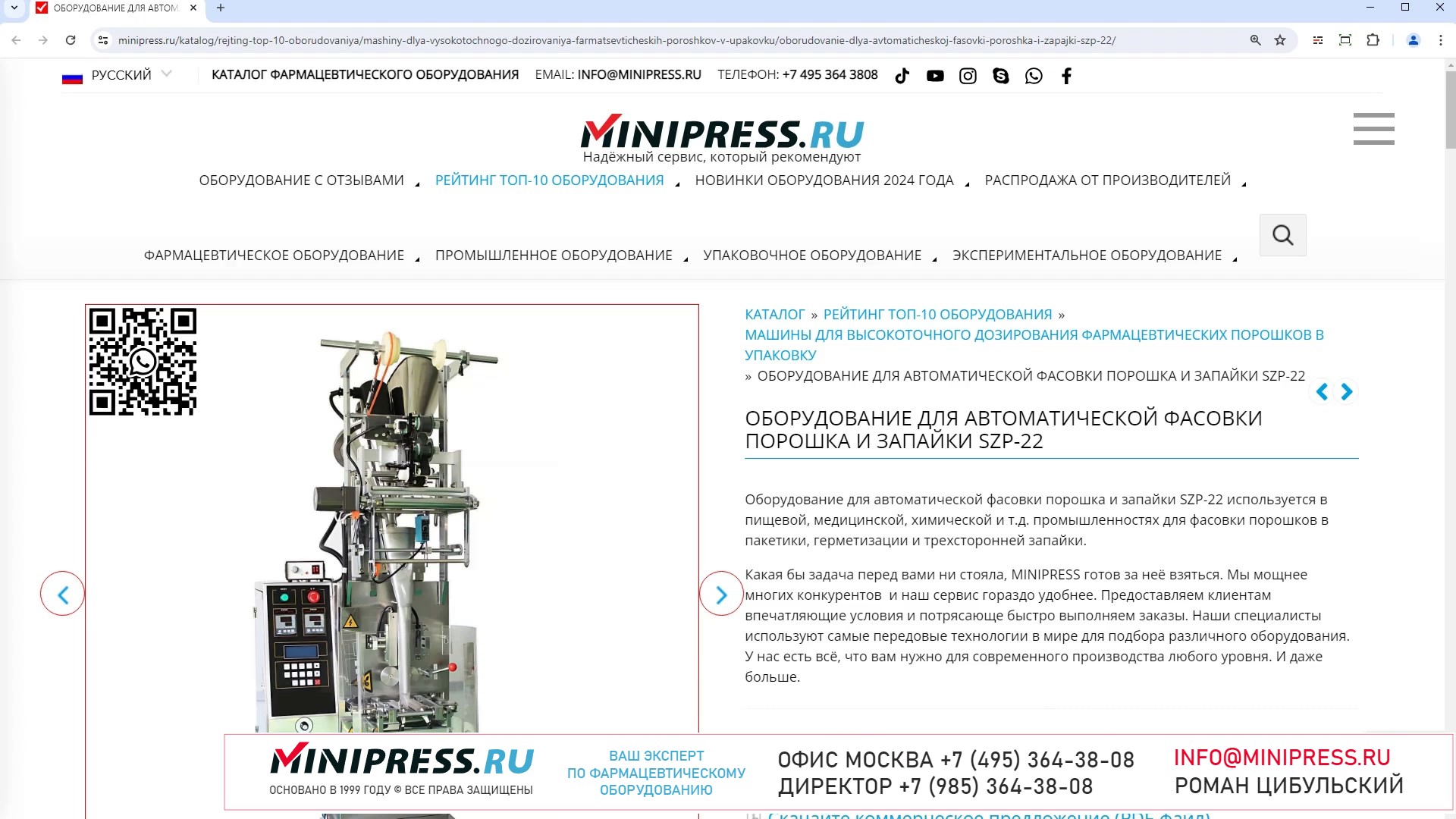 Компания MINIPRESS.RU занимается АВТОМАТИЧЕСКИМИ ФАСОВОЧНЫМИ МАШИНАМИ. Фасовка осуществляется в пластиковые банки, тубы, блистеры. Счетчики таблеток, капсул, мелких предметов для упаковки по количеству и весу. Компания Романа Цибульского MINIPRESS.RU занимается поставкой большого ассортимента фармацевтического оборудования из Китая, Кореи, Индии, Европы и других стран. Мы выполняем работы по поиску, подбору, закупке, доставке, и таможенной очистке оборудования с доставкой в любой город России и стран СНГ. Основатель и ведущий специалист компании - Роман Цибульский. Компания MINIPRESS.RU (зарегистрированный товарный знак) основана в 2000 году. Онлайн каталог оборудования MINIPRESS.RU ежедневно посещают несколько тысяч человек. Мы развиваем крупные каналы в социальных сетях, посвященные тематике фармацевтического оборудования. Вы можете посмотреть видео ролики об оборудовании, которым мы занимаемся. Фактически у нас самый большой в России многоязычный каталог фармацевтического оборудования с фотографиями, описаниями, и что более важно с ценами и видео демонстрацией оборудования в работе. Подбор оборудования и консультации ведет сам владелец компании - Роман Цибульский. Компания имеет огромный опыт в работе с различным оборудованием, технологиями. Помогаем клиентам выбрать модель фармацевтического оборудования, которое сможет решить поставленную задачу. Наши специалисты помогают рекомендациями в решении проблем по эксплуатации оборудования. Наша компания имеет офис в г.Шанхай и несколько менеджеров, которые помогают в работе с китайскими поставщиками. Мы долго сотрудничаем и дружим с этими специалистами. Китайские поставщики ценят нас как постоянных партнеров. Роман Цибульский Директор компании Минипресс Поставка фармацевтического оборудования в Россию Пишите: info@minipress.ru Gmail: boss.minipress@gmail.com Офис в Москве +7(495)364-38-08 Мобильный +7(985)364-38-08 (WhatsApp) Каталог оборудования https://www.Minipress.ru/katalog/ МИНИПРЕСС.РУ В СОЦИАЛЬНЫХ СЕТЯХ FB https://facebook.com/roman.tsibulsky YOUTUBE https://www.youtube.com/@farmacevticheskoe_oborudovanie INSTAGRAM https://www.instagram.com/farmacevticheskoe_oborudovanie/ #распыляемость #капсулы #сито #сортировка #фармацевтика #цена #конвейер #жидкости #ингредиент #бады