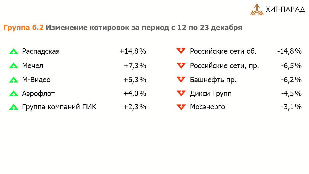 Рынок акций. Хит-Парад 26.12.16 г.