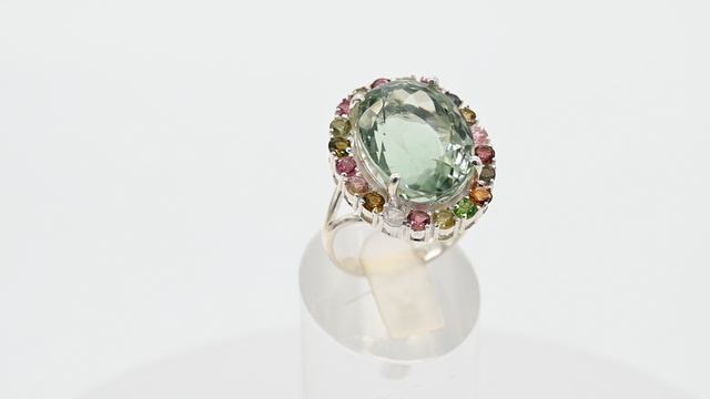 Кольцо С925 с аметистом зеленым и турмалином 20*25мм, размер 19, 9,6г с103525