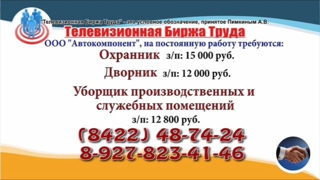 Вакансии и телефоны прямых работодателей в специализированной программе по трудоустройству "Телевизионная Биржа Труда" - г.Ульяновск