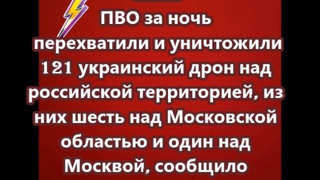 Силы ПВО за ночь перехватили и уничтожили 121 украинский дрон над российской территорией