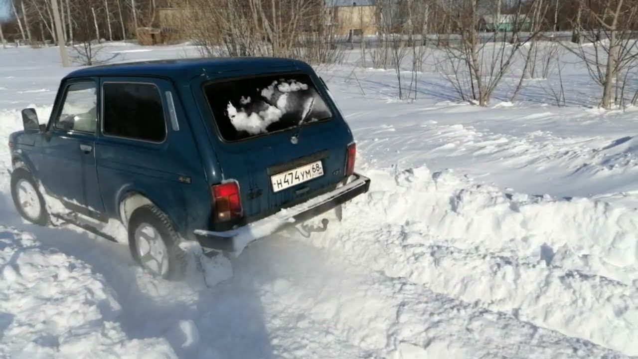 Нива пробивает дорогу после снегопада