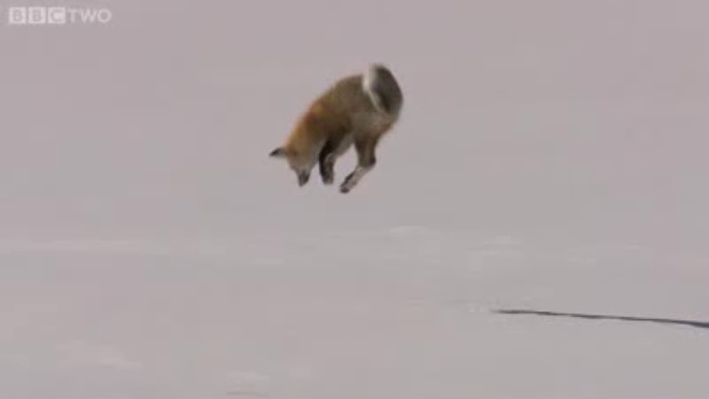 Как лиса охотится на мышь зимой