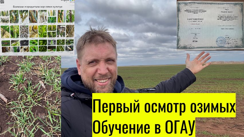 Первый выезд в поля, осмотр озимой пшеницы. Обучение в ОГАУ, органическое земледелие