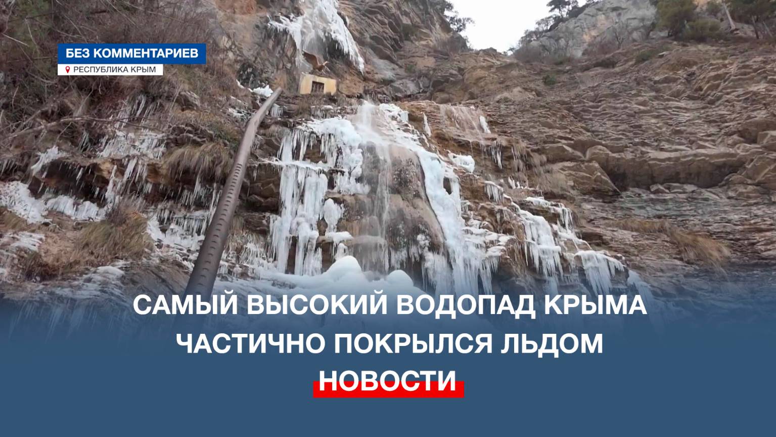 Самый высокий водопад Крыма частично покрылся льдом