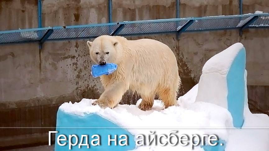 Медведица Герда плавает подо льдом и выплывает с канистрой.
