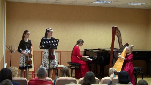 Г. Ф. Гендель "Анданте алегро" з концерту для арфи Си мажор !!! потрібна інформацыя про виконавський склад !!! Олександра Загребельна - скрипка Наталія Бєлік - скрипка ??? - фортепіано Ганна Дерій - арфа 11.03.2016 ДМШ №15 м. Києва