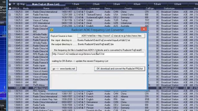 Updating the Bonito RadioJet 1102S Frequency list