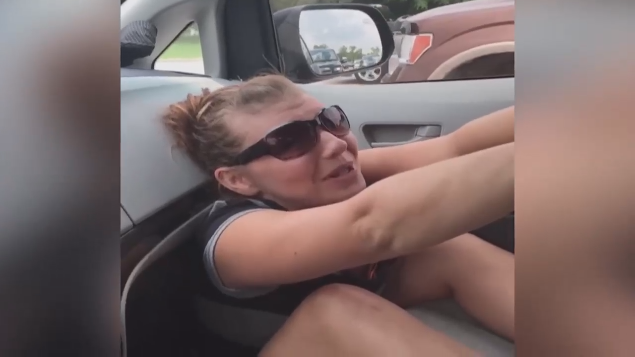 Пока семья стояла в пробке, мама развернулась лицом в салон, чтобы поснимать детей, но не удержалась, соскользнула вниз и застряла между сидением и передней панелью машины.
