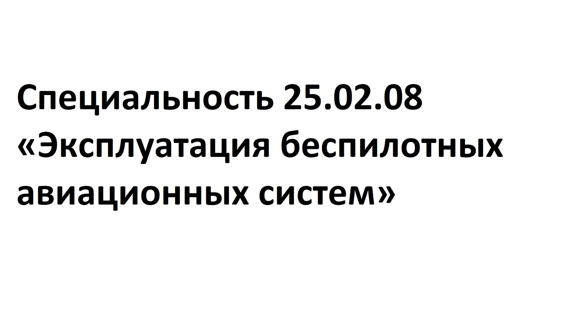 Специальность 25.02.08 «Эксплуатация беспилотных авиационных систем»