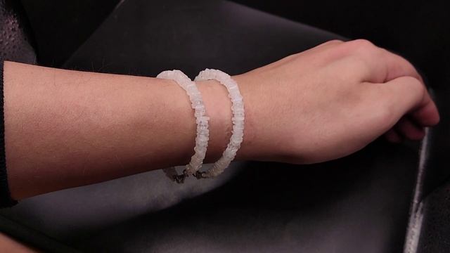 Браслет из бусин: Лунный камень Место добычи - Индия. 100% природный камень, без облагораживания. Размер бусин: ~5х2 мм. На запястье в обхвате: 18 см. Замок - карабин. Б52
