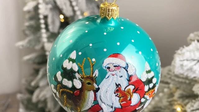 Стеклянный ёлочный шар ЛЕСНАЯ СКАЗКА, узорчатый, бирюзвый, 85 мм, С2066-бир