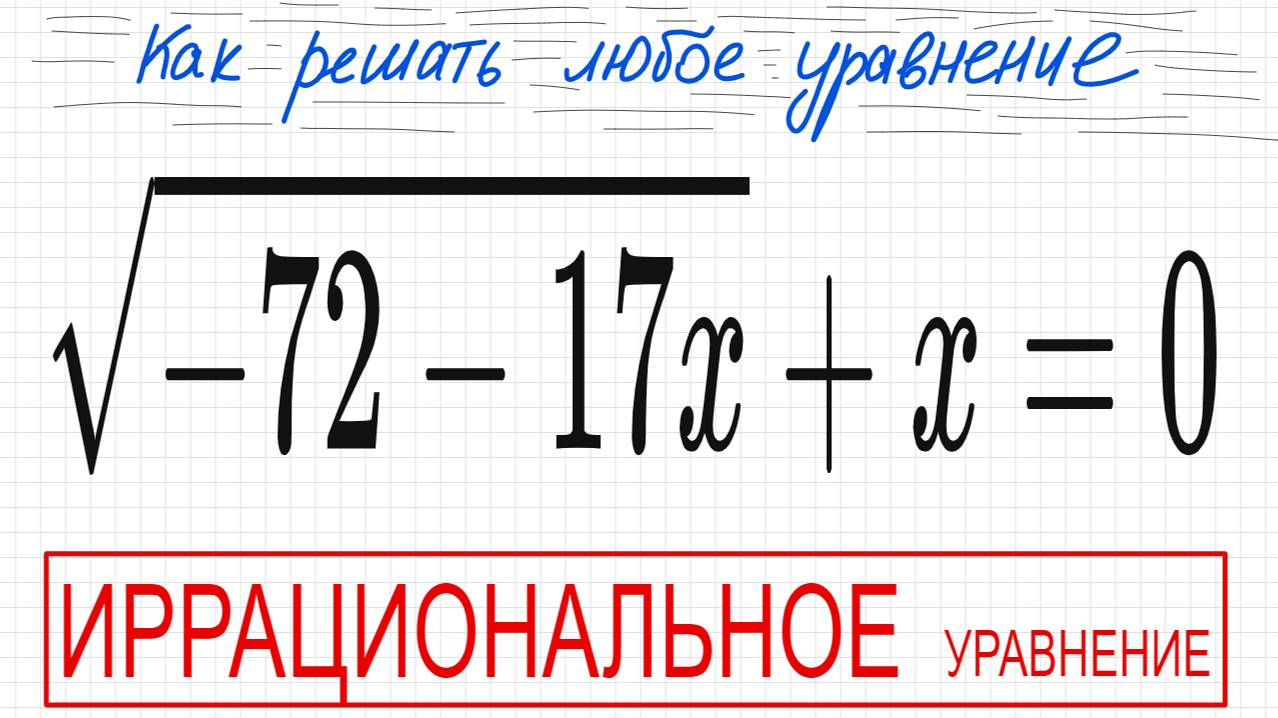 №5 Иррациональное уравнение (с корнями) √(-72-17х)+х=0 Как решать уравнение с квадратным корнем Како