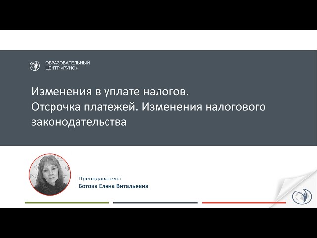 Изменения в уплате налогов. Отсрочка платежей. Изменения налогового законодательства [Вебинар]