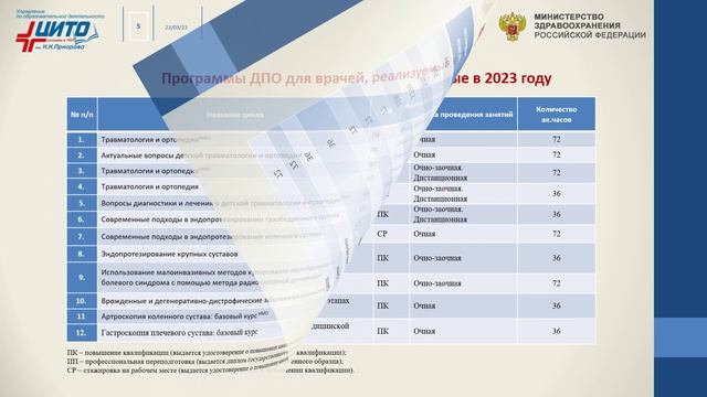 Образовательные программы, реализуемые ФГБУ «НМИЦ ТО им. Н.Н. Приорова» Минздрава России