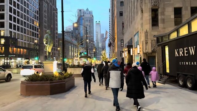 Прекрасная Новогодняя Вечерне/Ночная прогулка, по центру ЧИКАГО!