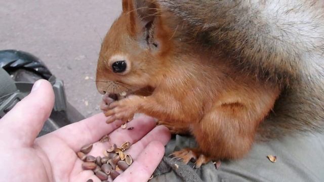 Неспеша кормлю белочку