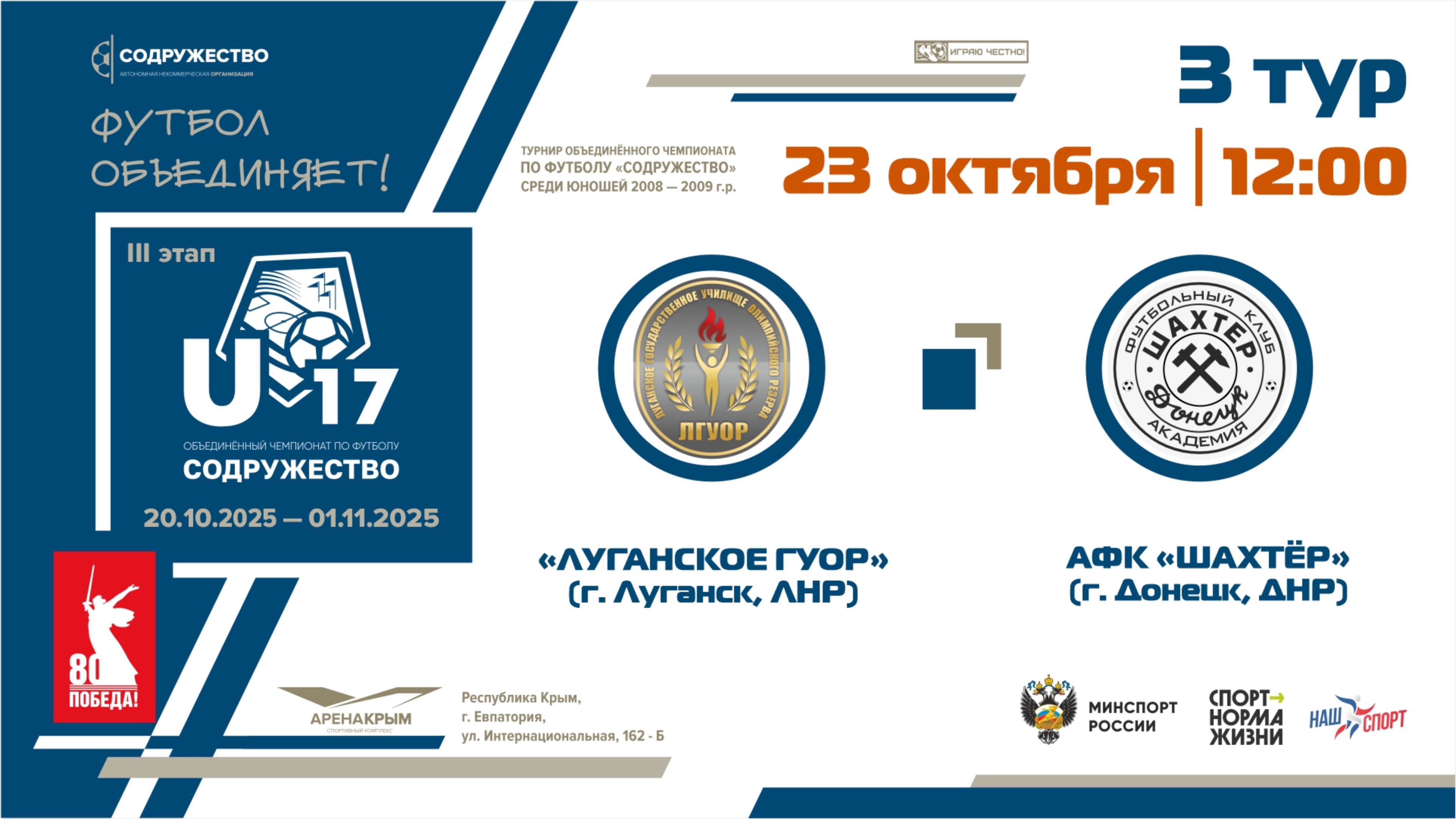 3 ТУР | U-17 | «Луганское ГУОР» (г. Луганск, ЛНР) - АФК «Шахтер» (г. Донецк, ДНР) | 23.10.2025