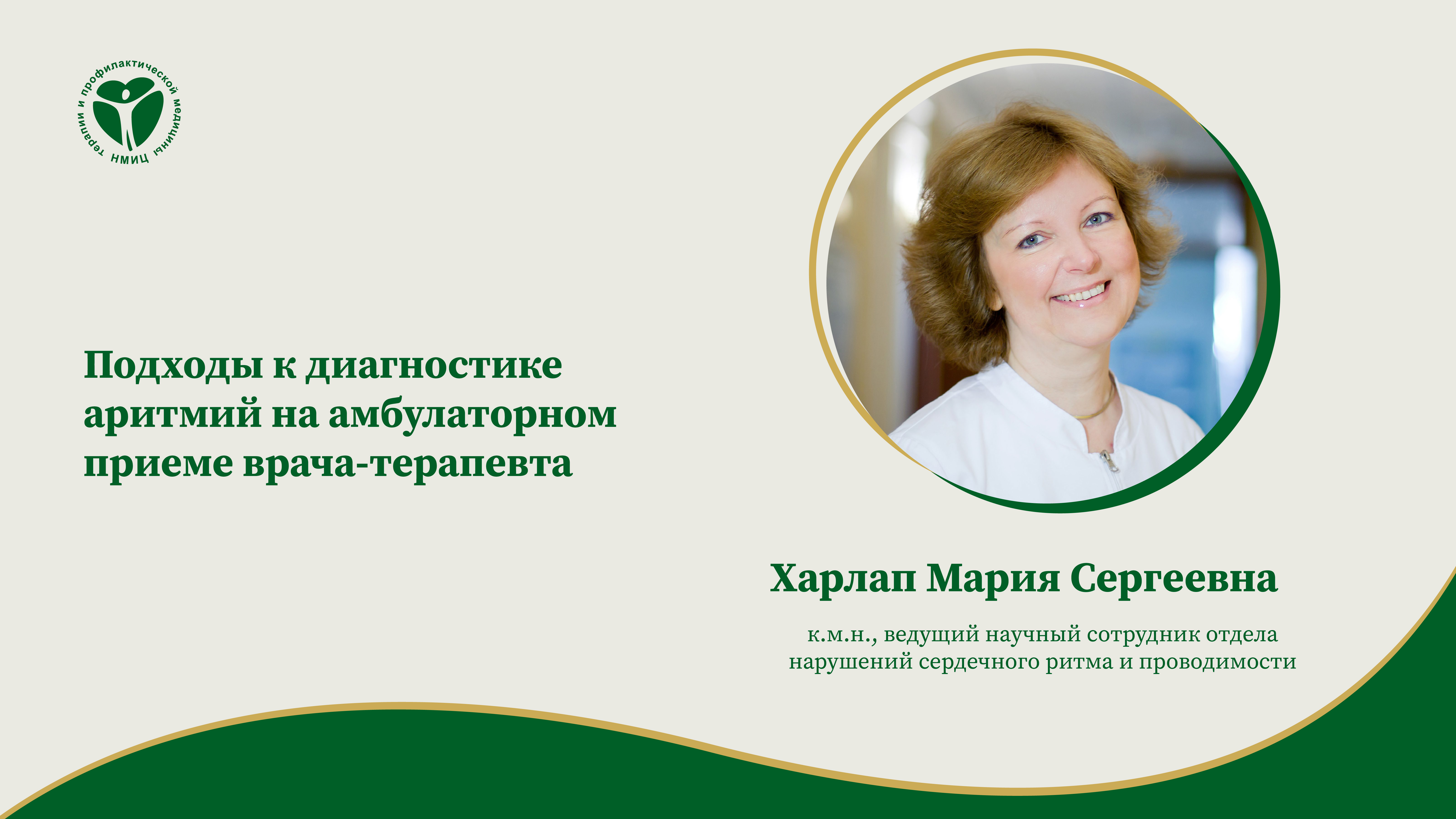 «Подходы к диагностике аритмий на амбулаторном приеме врача-терапевта», лекция от 02.04.2024. Лектор: Харлап Мария Сергеевна — к.м.н., ведущий научный сотрудник отдела нарушений сердечного ритма и проводимости ФГБУ «НМИЦ ТПМ» Минздрава России.