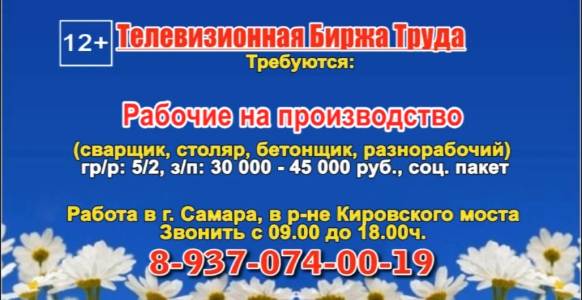 Вакансии и телефоны прямых работодателей в специализированной программе по трудоустройству "Телевизионная Биржа Труда" - г.САМАРА, г.ТОЛЬЯТТИ т/к РЕН ТВ