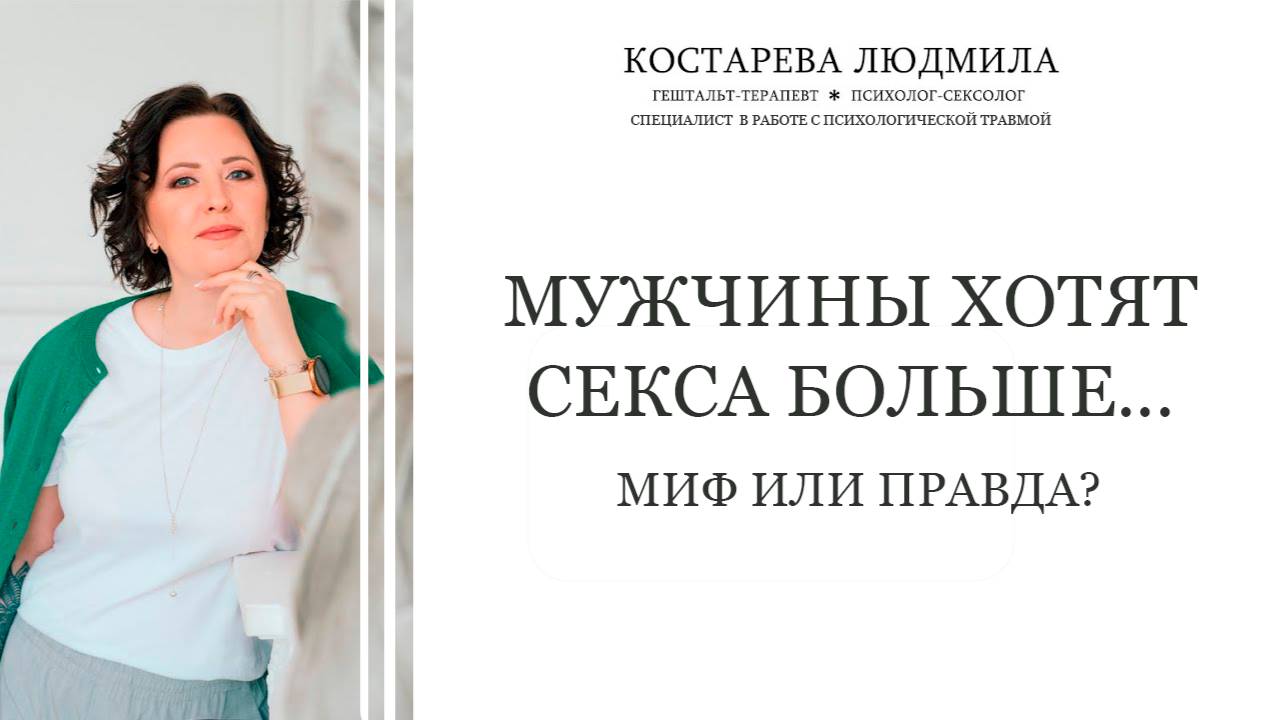Доказано: потребность в сексе у мужчин и женщин в среднем одинакова! Разбираем 4 главных фактора, которые реально влияют на женское либидо (спойлер: тестостерон – не главный). Тест для женщин, которые хотят узнать почему у них секс про “надо”, а не “хочу” : https://t.me/kostareva_ludmila_bot Cайт: https://kostareval.ru/ Tg-канал: https://t.me/sexolog_kostareva