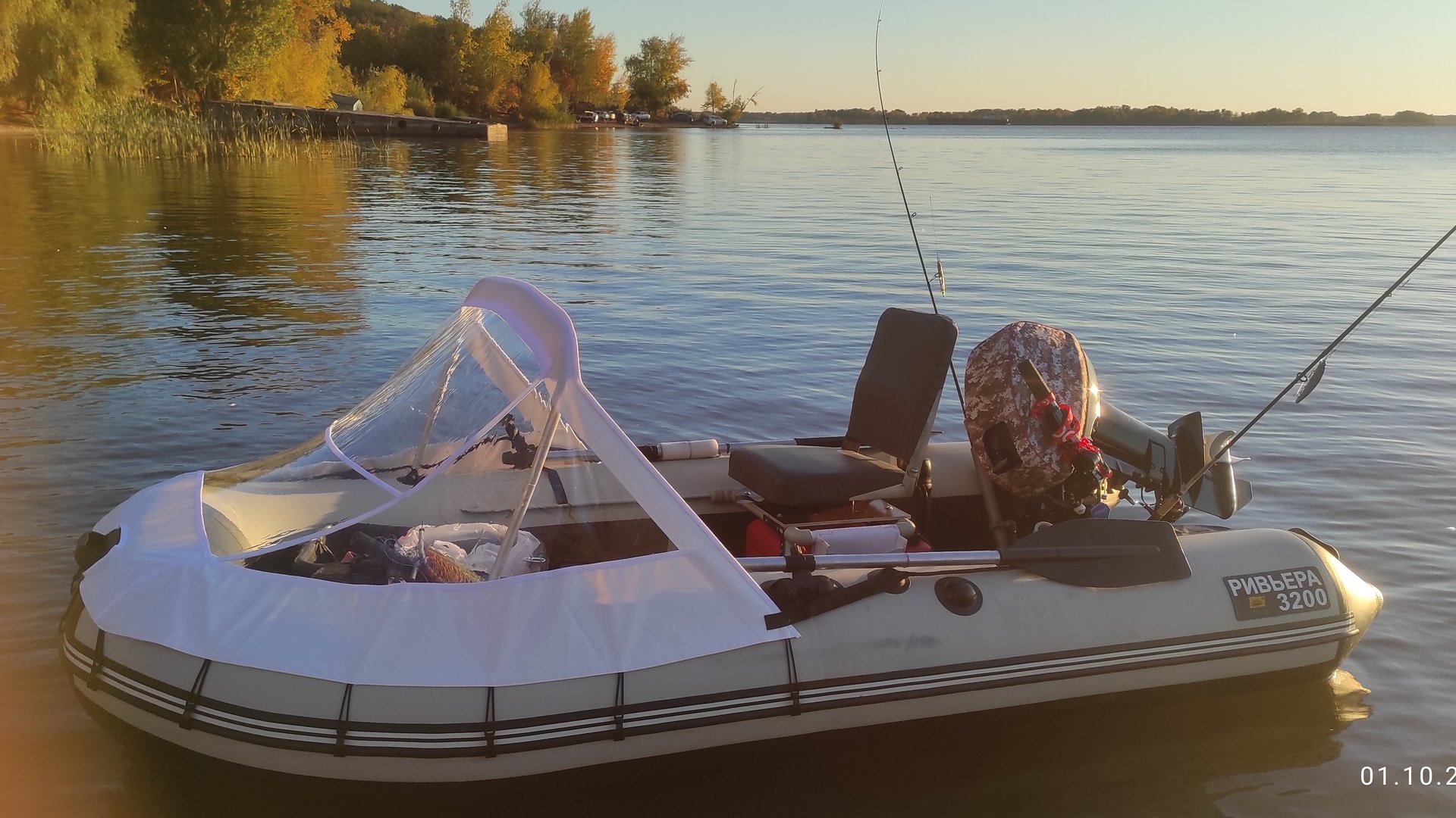 Самодельное кресло с поворотной платформой в лодку ПВХ. Установил носовой тент. Постелил коврик из ЭВА на пайолы в Ривьеру.