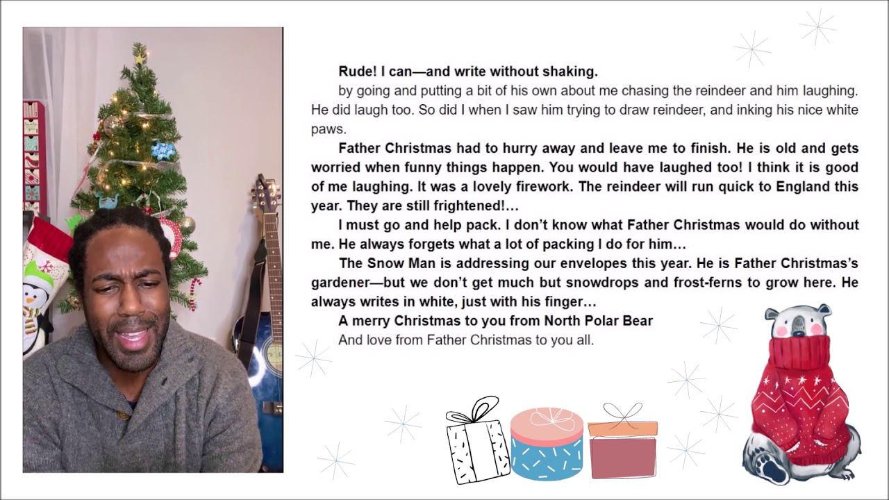 Американец Дэвид Уэлс читает для вас Толкина. Приближенный перевод - "Письма Деда Мороза". Оригинал - "Письма Отца Рождества" (Letters from Father Christmas). А вы думали Толкин - это только Средиземье и хоббиты?.. Предлагаем насладиться классикой американского акцента. Обратите внимание на раскатистое Р и звуки h, d, t. Читаем вместе с Дэвидом! Центральная городская библиотека им. П. П. Бажова