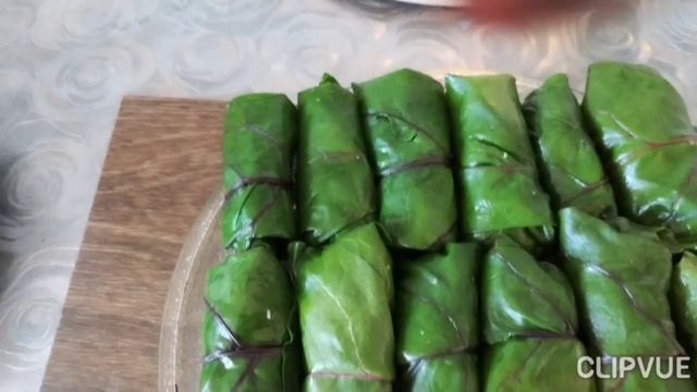 Голубцы в свекольных листьях.