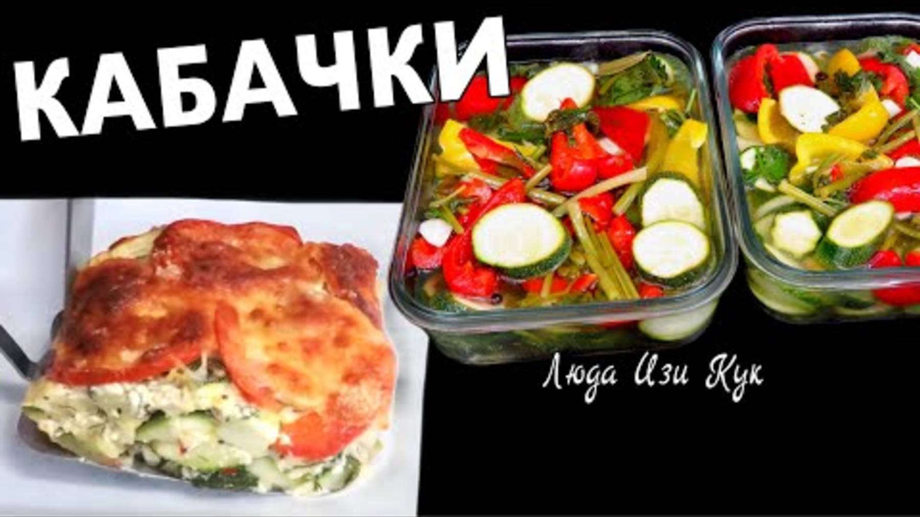 Что приготовить из кабачков быстро и вкусно? 3 рецепта на обед и ужин, закуска, Люда Изи Кук 🥒🍋🐔 📌Ингредиенты 1. 00:00 🍋🥒 быстрые кабачки в маринаде за 5 минут хрустящие вкусные Кабачки (цуккини) … 1 кг Перец болгарский … 3 шт Чеснок ... 70 г Сельдерей ... 100 г Перец чили ... по вкусу Маринад: Вода … 1 л Растительное масло … 50 г Лимонный сок … 60-80 мл Сахар… 4 ст.л. Соль… 2 ст.л. Лавровый лист ...4 шт. Перец душистый ...10 шт. 2. 🥗🐔 05:09 кабачки с курицей в духовке, полезный быстрый обед Кабачки (цуккини) ………600 г Куриные ножки ……… 700 г Перец болгарский …… 1 шт. Перец чили ……… 1 шт. (по вкусу) Лук репчатый …… 1 шт. Сельдерей …… 100 г Томаты в собственном соку …… 400 г Чеснок ……… 3 зубчика Оливковое масло ……. 4 ст.л. Соль и черный перец …… по вкусу Лавровый лист ……… 3 шт. Кориандр сушеный … 1 ч.л. Сушеный чеснок ……… 1 ч.л. Базилик …… ½ ч.л. Паприка ……… 1 ч.л. Сахар ……… 1 ст.л. 3. 10:27 🍅🧀 Запеканка с кабачками в сырной заливке Кабачки (цуккини) ……… 950 г Лук зеленый ……… 2-3 шт. Укроп …… пучок Чеснок …… 3-4 зубчика Помидор … 1 шт. Перец чили … по желанию Сметана …… 150 г Сыр моцарелла …150 г Сыр пармезан ……… 50 г Яйца ………. 2 шт. Сушеный чеснок ………. 1 ч.л. Базилик сушеный ………. 1 ч.л. Мускатный орех ………щепотка Соль и черный перец …по вкусу