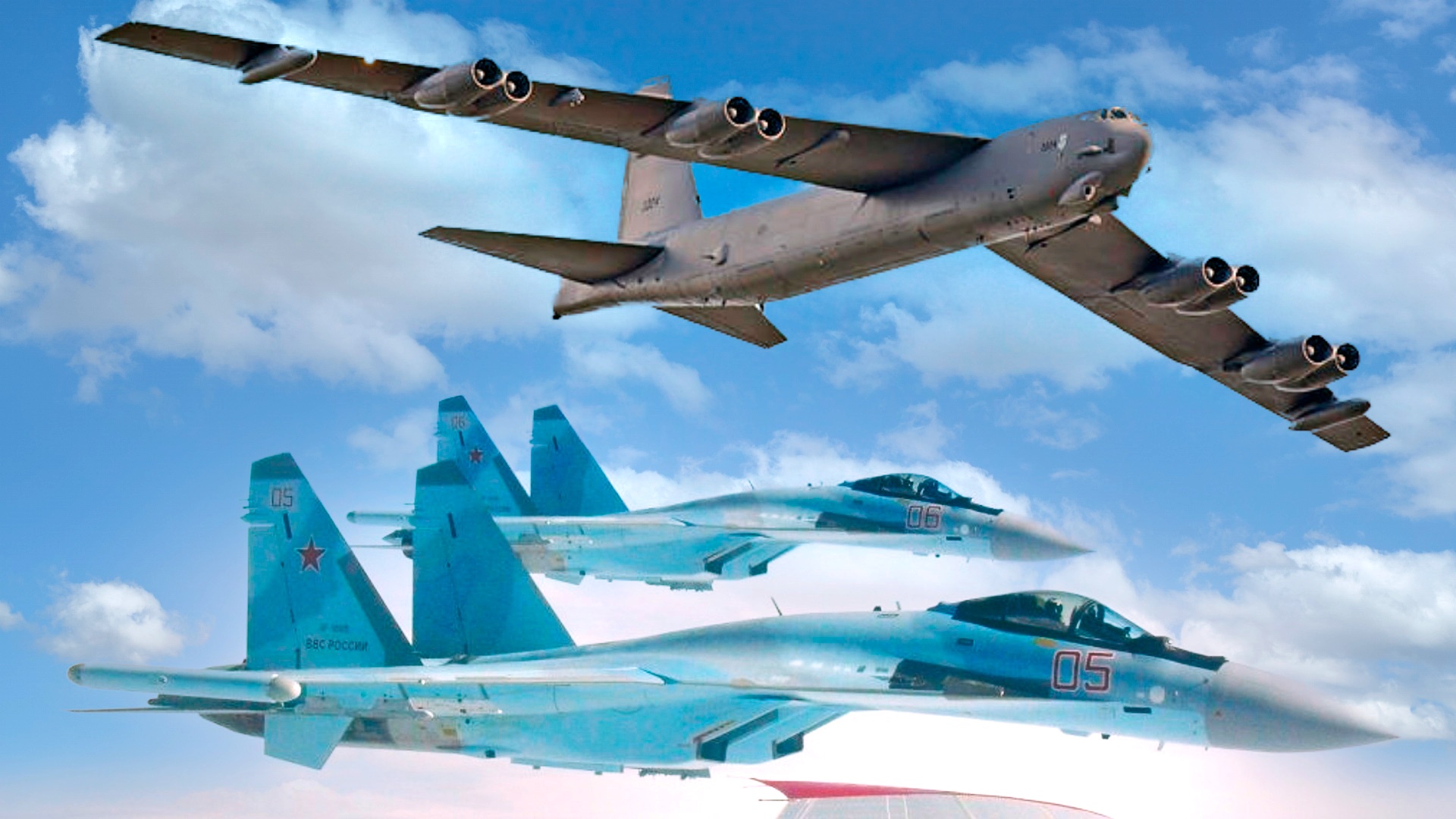 Три Су-35С перехватили бомбардировщик В-52Н ВВС США.mp4