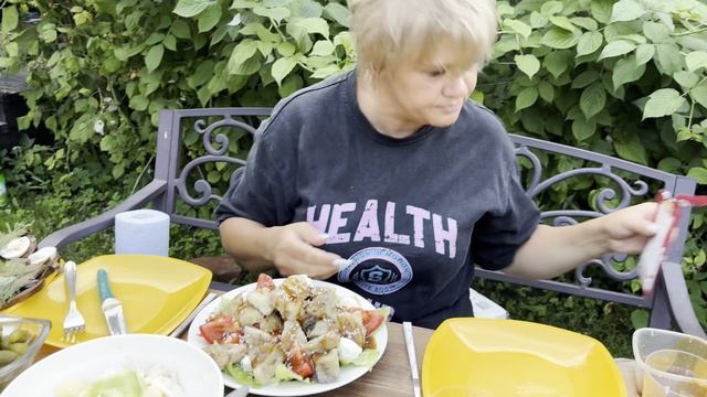 Салат тёплый с баклажанами.