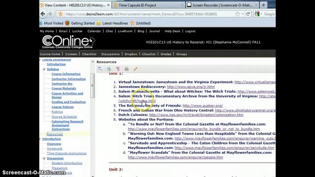 Screen Capture Tutorial for CCCOnline His201 Time Capsule