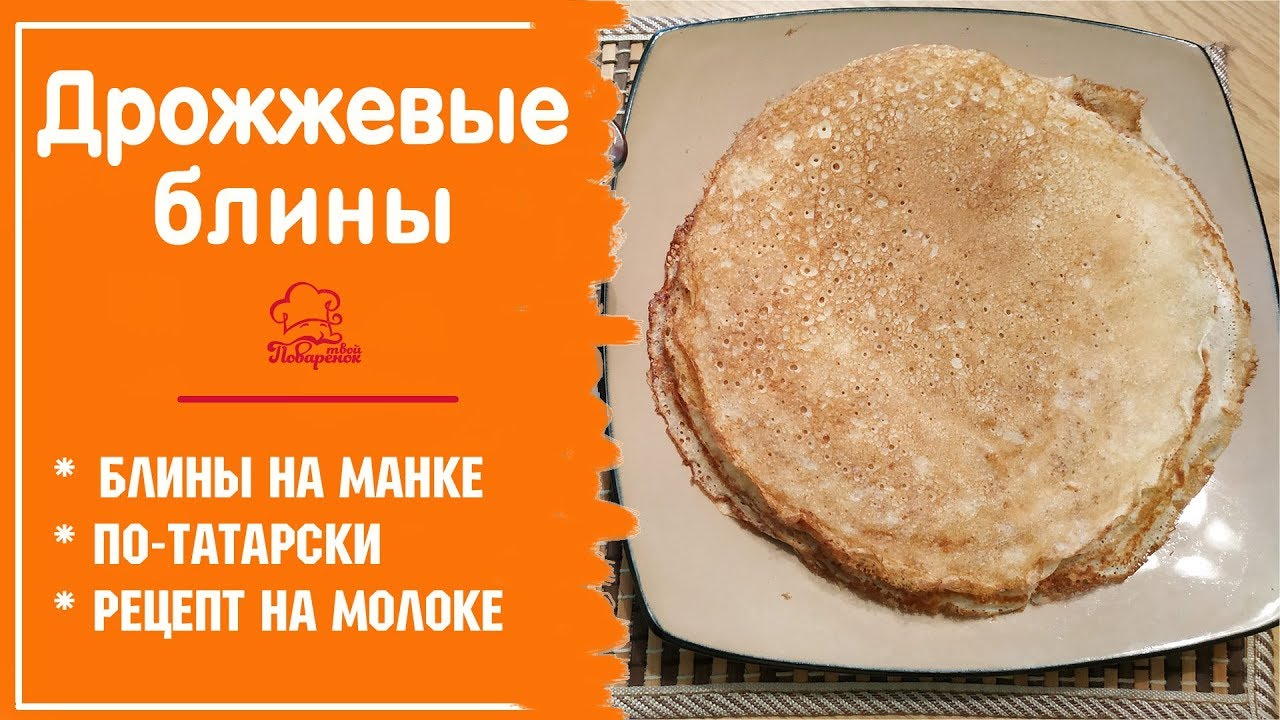 НАСТОЯЩИЕ дрожжевые блины, тонкие блинчики на молоке. Сухие дрожжи+кипяток (вода) + манка = татарские блины на дрожжах. Вкусная Масленица *** ИНГРЕДИЕНТЫ ********** ? Манка - 300 г ? Мука - 150 г ? Яйца - 2 шт. ? Сахар - 2-3 ст.л. ? Соль - 1 щепоть ? Дрожжи - 11 г. ? Молоко - 250 мл ? Вода - 250 мл ? Растительное масло - 2-3 ст.л. ? Кипяток - 200 мл ****** НАШ КУЛИНАРНЫЙ ПОРТАЛ ****** Здесь вы сможете найти множество вкусных фоторецептов https://tvoi-povarenok.ru/ Спасибо, что смотрите, доверяете и готовите с нами! Ставьте лайк и делитесь этим видео с друзьями! Спасибо за ваши комментарии! Мы постараемся ответить на все ваши комментарии и пожелания :) Подпишитесь на канал по ссылочке ➤http://www.youtube.com/channel/UCuVkBnZz9cUBDKzHFLi0YLg?sub_confirmation=1 ** СООБЩЕСТВО ТВОЙ ПОВАРЕНОК В ЮТУБЕ** https://www.youtube.com/channel/UCuVkBnZz9cUBDKzHFLi0YLg/community *********** МЫ В СОЦСЕТЯХ *********** Присоединяйтесь! Там у нас весело)) ➤ VK - https://vk.com/public126248315 ➤ OK - https://ok.ru/tvoipovarenok ➤ Facebook - https://www.facebook.com/groups/552948781448635/about/ ➤ twitter - https://twitter.com/tvoipovarenok ➤ Instagram - https://www.instagram.com/tvoipovarenok/ *********** ПИШИТЕ НАМ ********** На электронную почту: povarenok77komanda@gmail.com Для рекламодателей: свои предложения по сотрудничеству отправляйте на почту info@tvoi-povarenok.ru ***** НАША КУЛИНАРНАЯ АКАДЕМИЯ ***** Здесь вы можете научиться готовить https://tvoi-povarenok.com *********** ВСЕ ПЛЕЙЛИСТЫ *********** https://www.youtube.com/channel/UCuVkBnZz9cUBDKzHFLi0YLg/playlists?view_as=subscriber