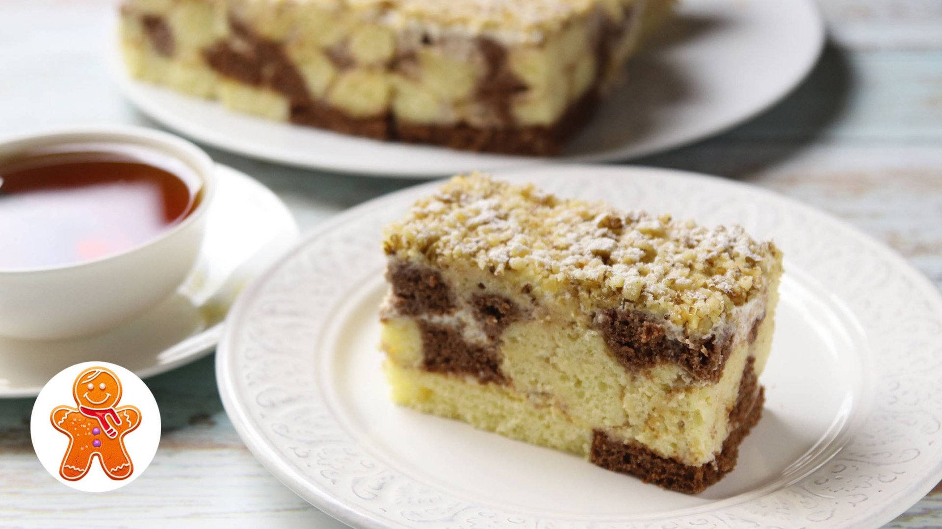 Для теста на форму 21х21 см: 240 г муки 250 г сметаны 2 средних яйца 200 г сахара 1/2 банки сгущенного молока (190 г) 1 ч. ложка разрыхлителя для теста щепотка соли 1 ст. ложка муки и 1 ст. ложка какао-порошка 100-150 г нежирной сметаны для пропитки коржа Для крема: 500-700 мл жирной сметаны или сливок сахар или сгущенное молоко по вкусу (я добавила 190 г сгущенки) Для посыпки торта: 50г грецких орехов сахарная пудра Вес торта - 1,5 кг