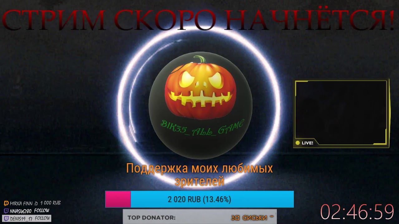 Multistreaming with https://restream.io/ Поддержка стримера и канала: С % на благотворительность == https://www.donationalerts.com/r/bik35_all_game Прямая поддержка стримера == https://donate.qiwi.com/payin/bik35_all_game Ссылки на каналы: Твич https://www.twitch.tv/bik35_all_game Youtube https://www.youtube.com/channel/UC2JQUg12meyNNeL1I2em5ZQ?view_as=subscriber VK https://vk.com/public187700964 Канал партнёра: https://www.youtube.com/channel/UCnG9_ON9cOJhWTHU6GgpZJw