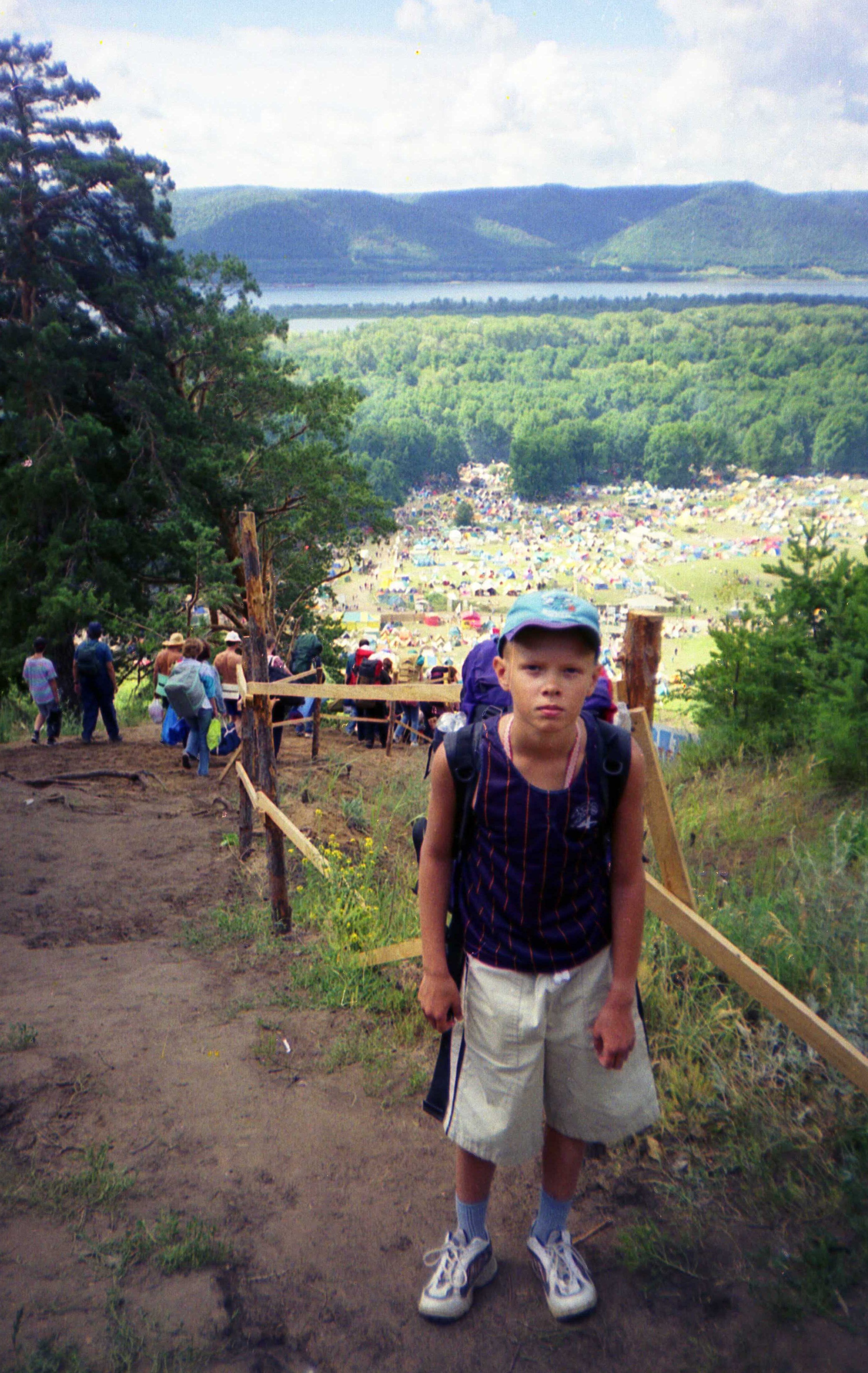 Одно из мероприятий летней полевой педагогики: д/молодёжный бародвский полевой городок на Грушинском фестивале лета 2001 года