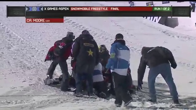 Неудачный прыжок на снегоходе