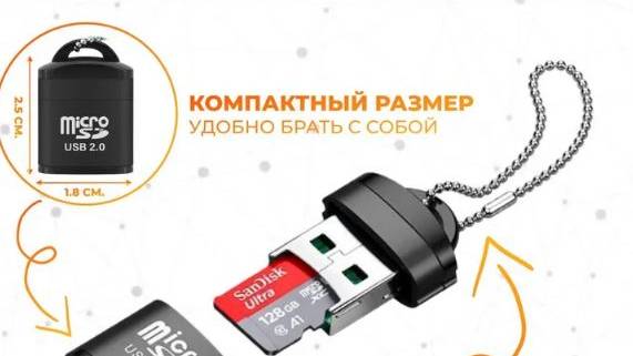 мини картридер для карт micro SD через порт USB.Обзор.