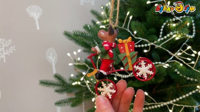 332283 Елочное украшение Олень на велосипеде металл ретро 8см в ассортименте
