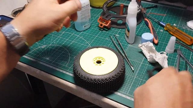 проклейка колёс багги 1/8