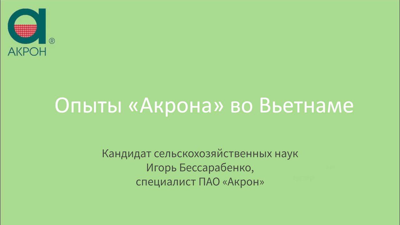 Цель опытов «Акрона» во Вьетнаме - демонстрация агрономической и экономической эффективности применения минеральных удобрений «Акрона» на демонстрационных площадках фермерских хозяйств под эгидой министерства сельского хозяйства. Почему для опытов были выбраны овощные и фруктовые культуры, а не традиционный рис? Как мы представляем результаты опытов? Почему система питания растений, разработанная агрономами нашей компании, - доказано эффективна.