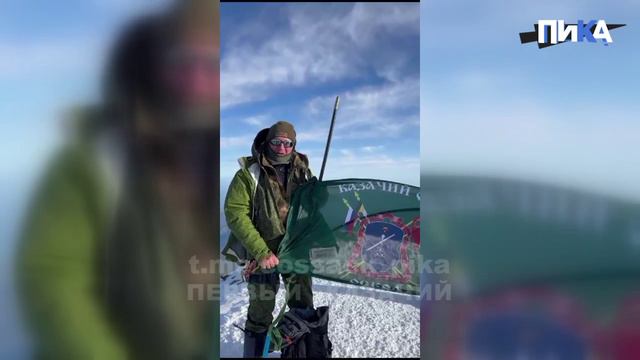 Ветераны отдельного казачьего отряда "Оскол" ДШК подняли знамя подразделения над наивысшей точкой России и Европы — горой Эльбрус.