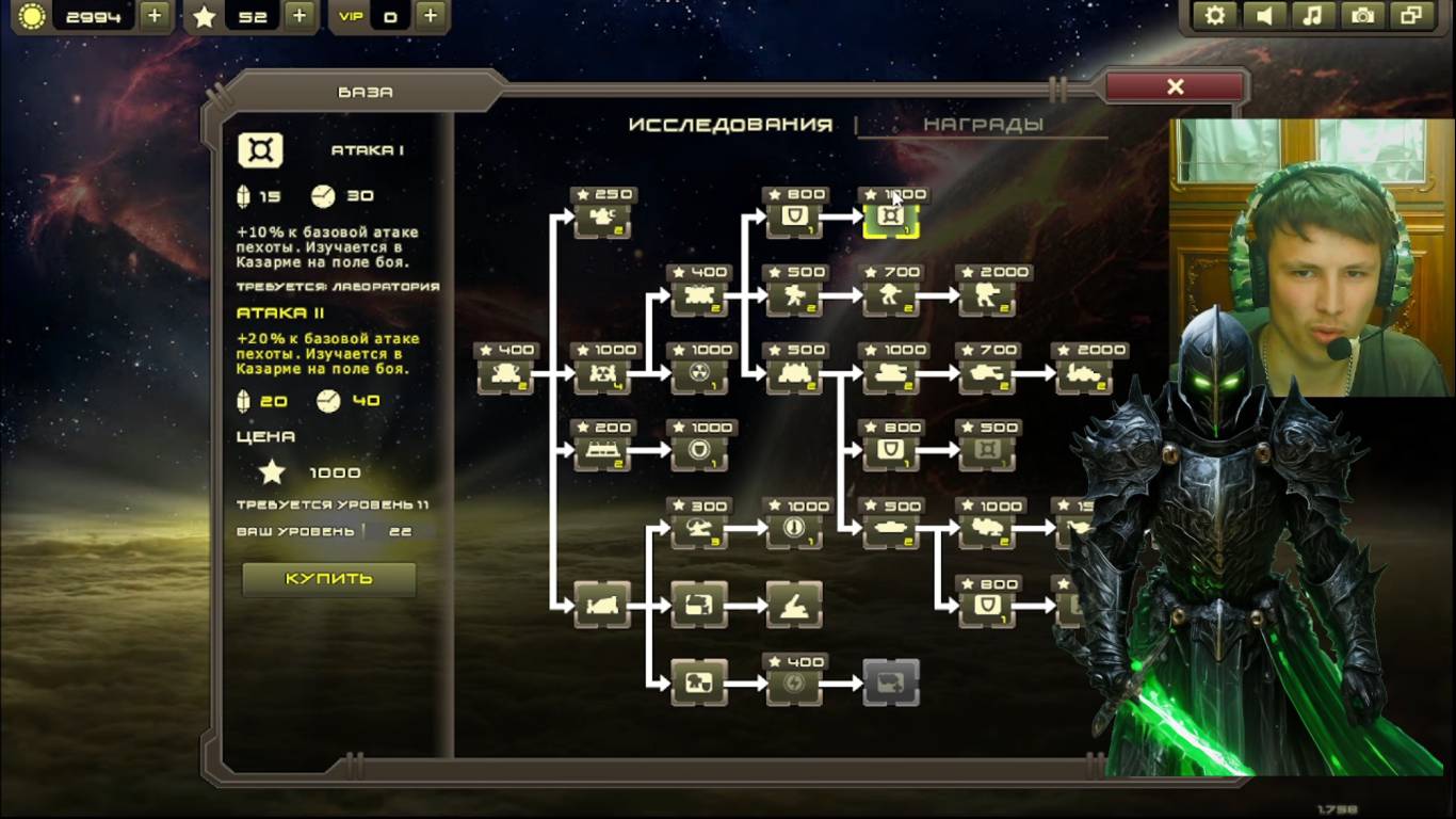 тёмный рыцарь играл с бронёй для авиации и прокачал атаку для пехоты в Honest War 53 серия.