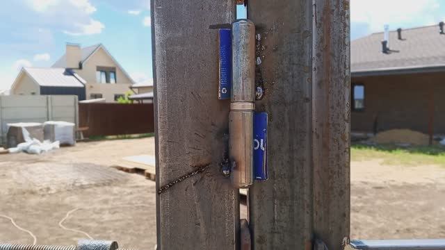 Работы и самоделки . Прихватил калитку в рамке к петлям . Сейчас буду их обваривать сваркой .